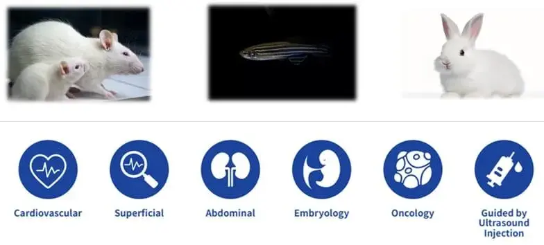 The RevoSilex F30/F60 delivers ultra-high-resolution, non-invasive imaging tailored for small animal models including mice, rabbits, and zebrafish. Equipped with advanced ultra-high-frequency technology and color Doppler functionality, it enables real-time assessment of cardiovascular performance, tumor vascularization, and physiological dynamics. Designed for applications in cardiovascular research, oncology, developmental biology, and drug discovery, its compact and portable architecture supports easy handling and reliable performance in longitudinal and repeat imaging studies.